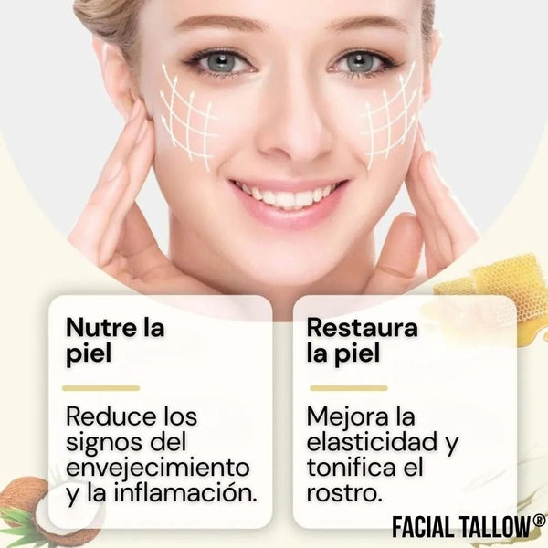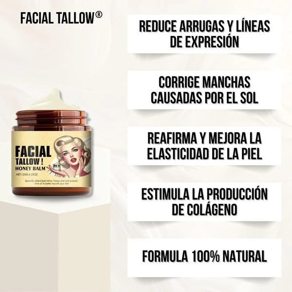 Sebo de res alimentada con pasto, miel cruda antioxidante y regeneradora, aceites naturales y caléndula calmante, vitamina E