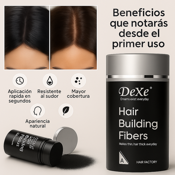 Se adhiere al cabello mediante electricidad estática, creando un efecto visual de mayor densidad y cobertura.